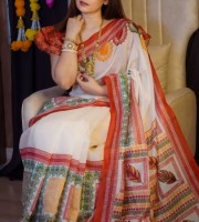 শাড়ির বিবরণ: চান্দেরি সিল্ক শাড়ি। একদম সফট। ফুল বডি ডিজিটাল প্রিন্ট কাজ করা।